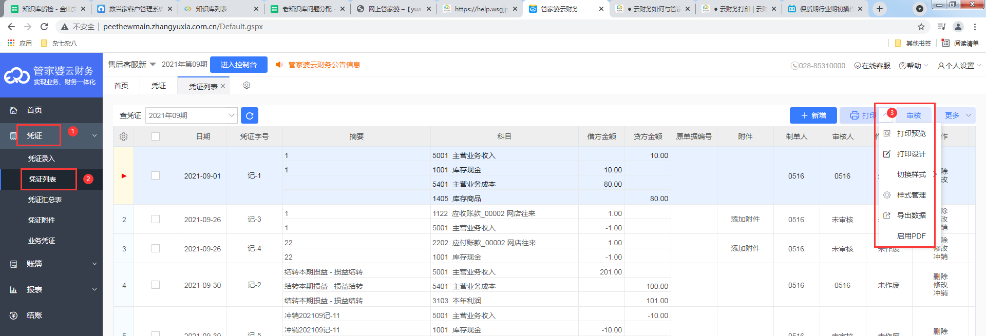 勾选一张或多张凭证后,再点击右上角的【打印】操作即可。