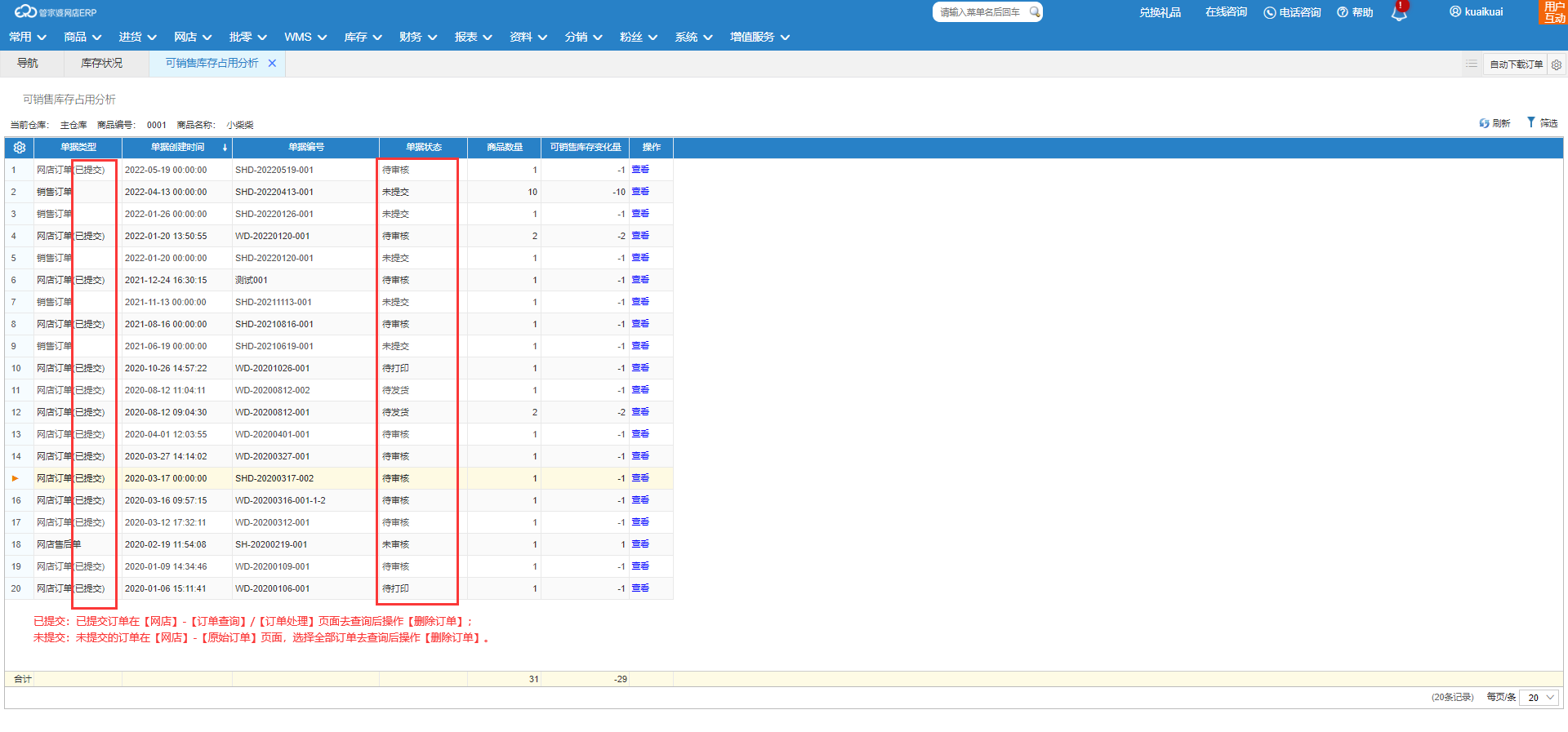 怎么删除占用了可销售库存的网店订单